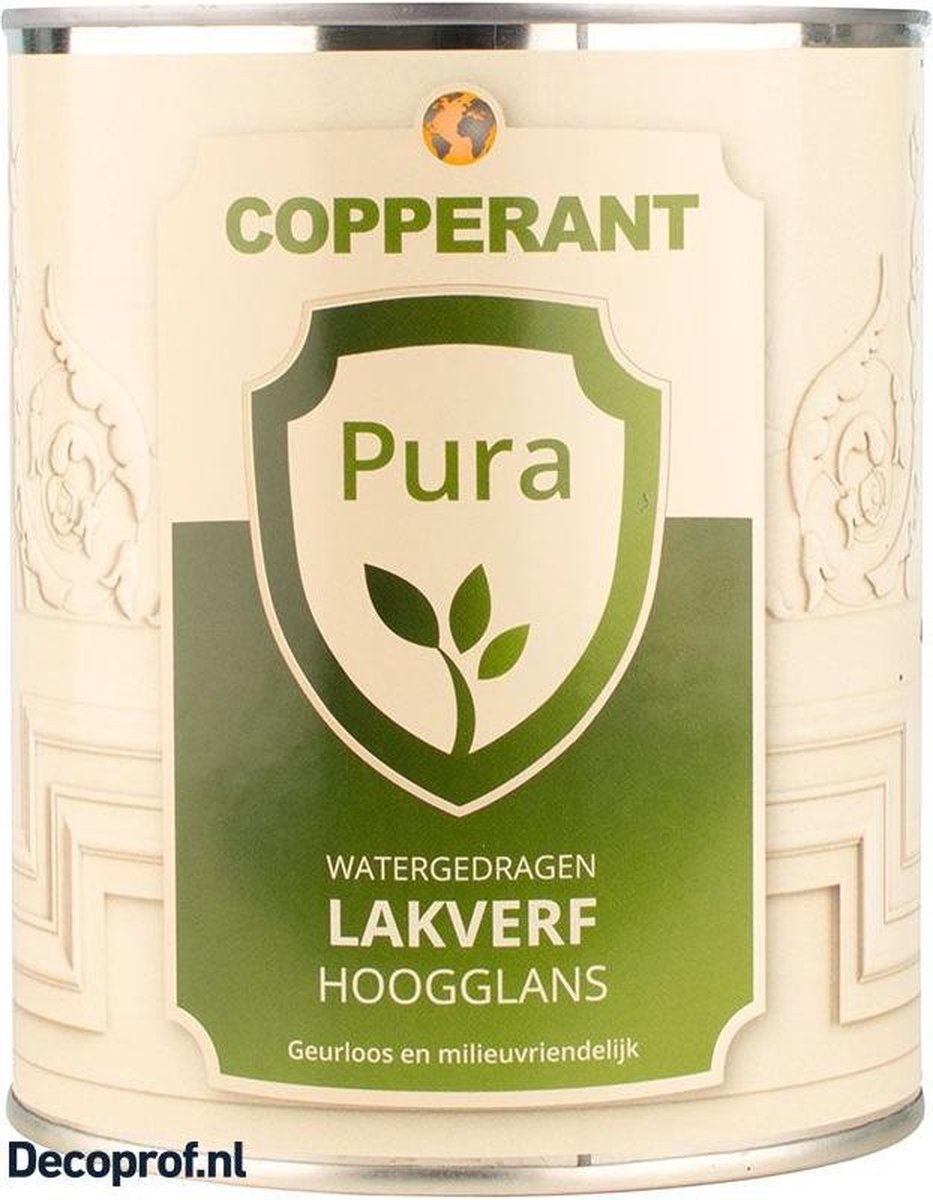 Dekkende lakverf op basis van water, plantaardig bindmiddel en andere natuurlijke grondstoffen. Geschikt voor verschillende ondergronden (binnen en buiten) in combinatie met Pura Multiprimer. Samen zorgen ze voor een langdurige bescherming (tot 7 jaar onderhoudsarm). De lak is kras- en stootvast en behoudt elasticiteit waardoor de kans op barsten of bladderen minimaal is. Pura Lakverf heeft een prettige verwerking, een optimale dekking met mooie vloei en een langdurig behoud van originele kleur en glans. Copperant Pura Lakverf Hoogglans bestellen? Bij ons bestelt u nu de Copperant Pura Lakverf Hoogglans zeer snel en voordelig! Wij leveren in 0,5 l - 1 l - 2,5 l