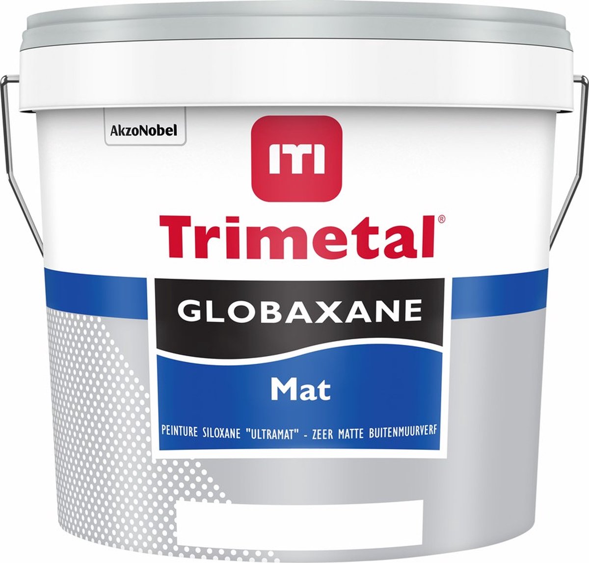 Trimetal Globaxane Mat - buitenmuurverf Omschrijving Globaxane Mat is een decoratieve muurverf voor buiten. De verf heeft een mineraal mat aspect, is watergedragen en zeer sterk waterdampdoorlatend. De gevelverf zorgt voor een geringe vuilaanhechting en heeft een weervast karakter. Ongeschilderde gronden bereid je beter goed voor met een hogedrukreiniger,antischimmelproduct, plamuur en fixeermiddel. In de technische fiche staa... lees meer over dit product
