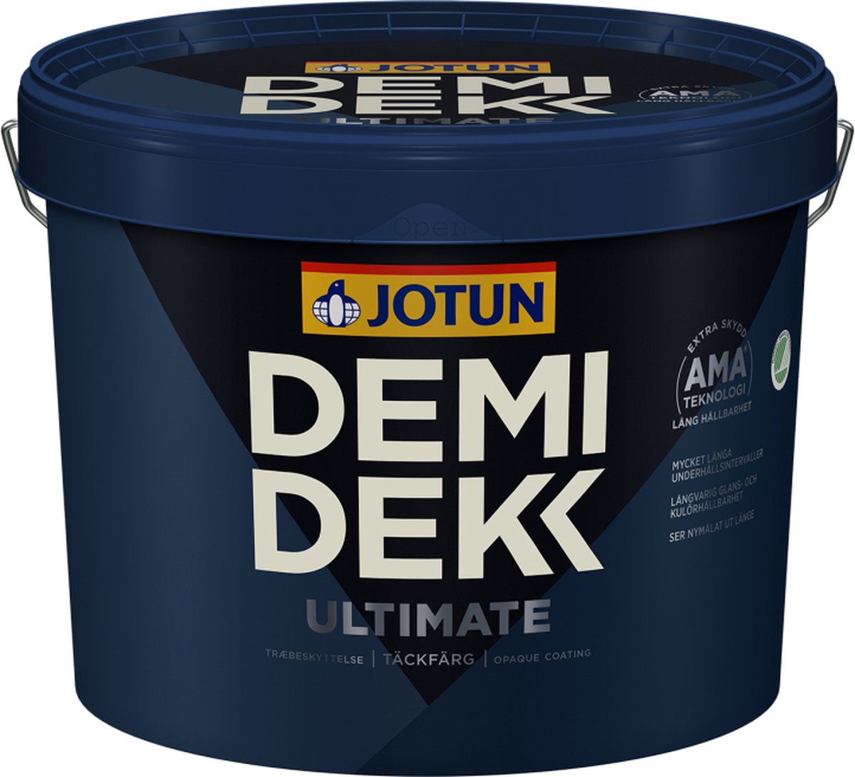 Jotun Demidekk Ultimate Täckfarg is een zeer duurzame, watergedragen, dekkende houtbescherming (beits) voor buiten die de houtstructuur accentueert. Als je schildert met Jotun Demidekk Ultimate heb je circa 12 jaar weinig tot geen omkijken meer naar jou werk.