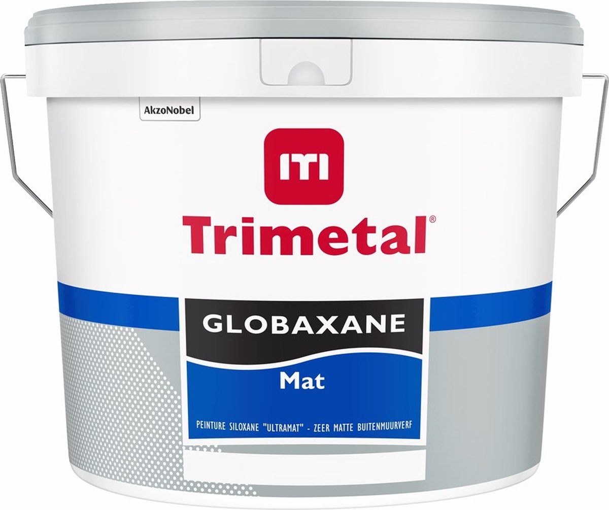 Trimetal Globaxane Mat - buitenmuurverf Omschrijving Globaxane Mat is een decoratieve muurverf voor buiten. De verf heeft een mineraal mat aspect, is watergedragen en zeer sterk waterdampdoorlatend. De gevelverf zorgt voor een geringe vuilaanhechting en heeft een weervast karakter. Ongeschilderde gronden bereid je beter goed voor met een hogedrukreiniger,antischimmelproduct, plamuur en fixeermiddel. In de technische fiche staa... lees meer over dit product