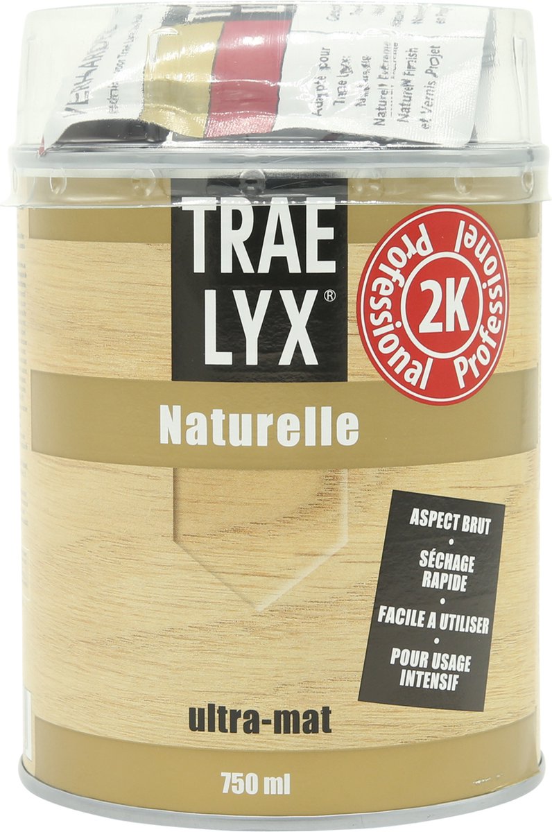 Trae Lyx Naturel is een ultra matte 2-componentenlak van projectkwaliteit. Het bijzondere aan deze lak is, dat, na droging van de lak, de vloer een onbehandelde uitstraling heeft, terwijl deze optimaal beschermd is. Vloeren, die met Trae Lyx Naturel behandeld zijn, kunnen intensief belast worden. Daardoor is Trae Lyx Naturel ook uitstekend te gebruiken als projectlak. Het is zeer slijt-, kras- en stootvast en heeft een hoge bestendigheid tegen chemicaliën. Trae Lyx Naturel kan worden aangebracht op diverse soorten parket en houten vloeren.