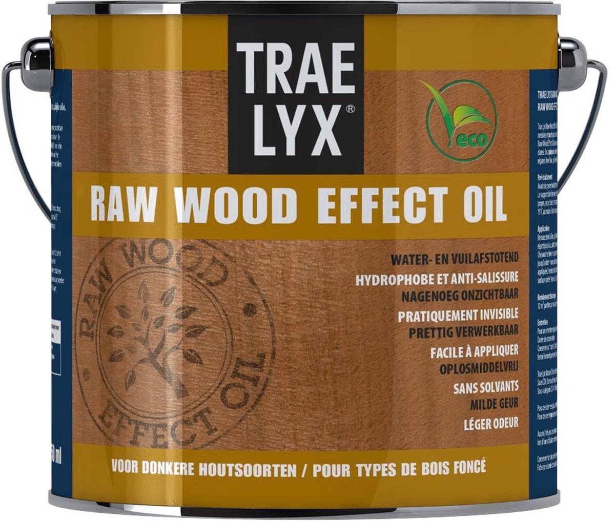 Trae-Lyx Raw Wood Effect Oil geeft de look & feel van onbehandeld hout. Trae-Lyx Raw Wood Effect Oil geeft houten objecten zoals vloeren, parket, trappen, meubels en ook kinderspeelgoed een nagenoeg onzichtbare maar optimale matte bescherming.