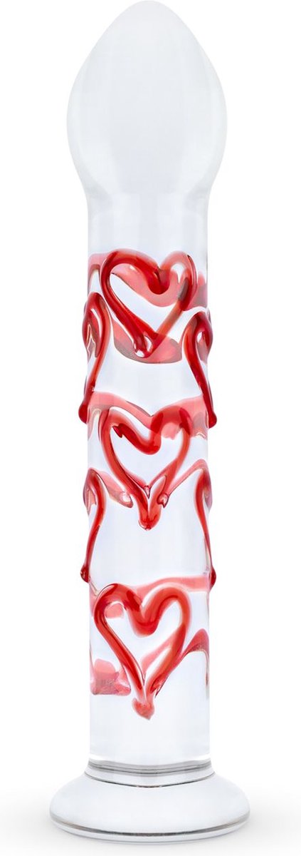 Deze glazen dildo is volledig gemaakt van premium kwaliteit glas en voorzien van romantische rode hartjes. De hartjes op de dildo zien er niet alleen mooi uit, maar zorgen ook voor een extra stimulatie bij elke beweging. De dildo voelt stevig aan en is perfect voor Temperature Play, hij kan worden opgewarmd of afgekoeld door hem een paar minuten in de koelkast of in warm of koud water te leggen. De dildo is te gebruiken met al... lees meer over dit product