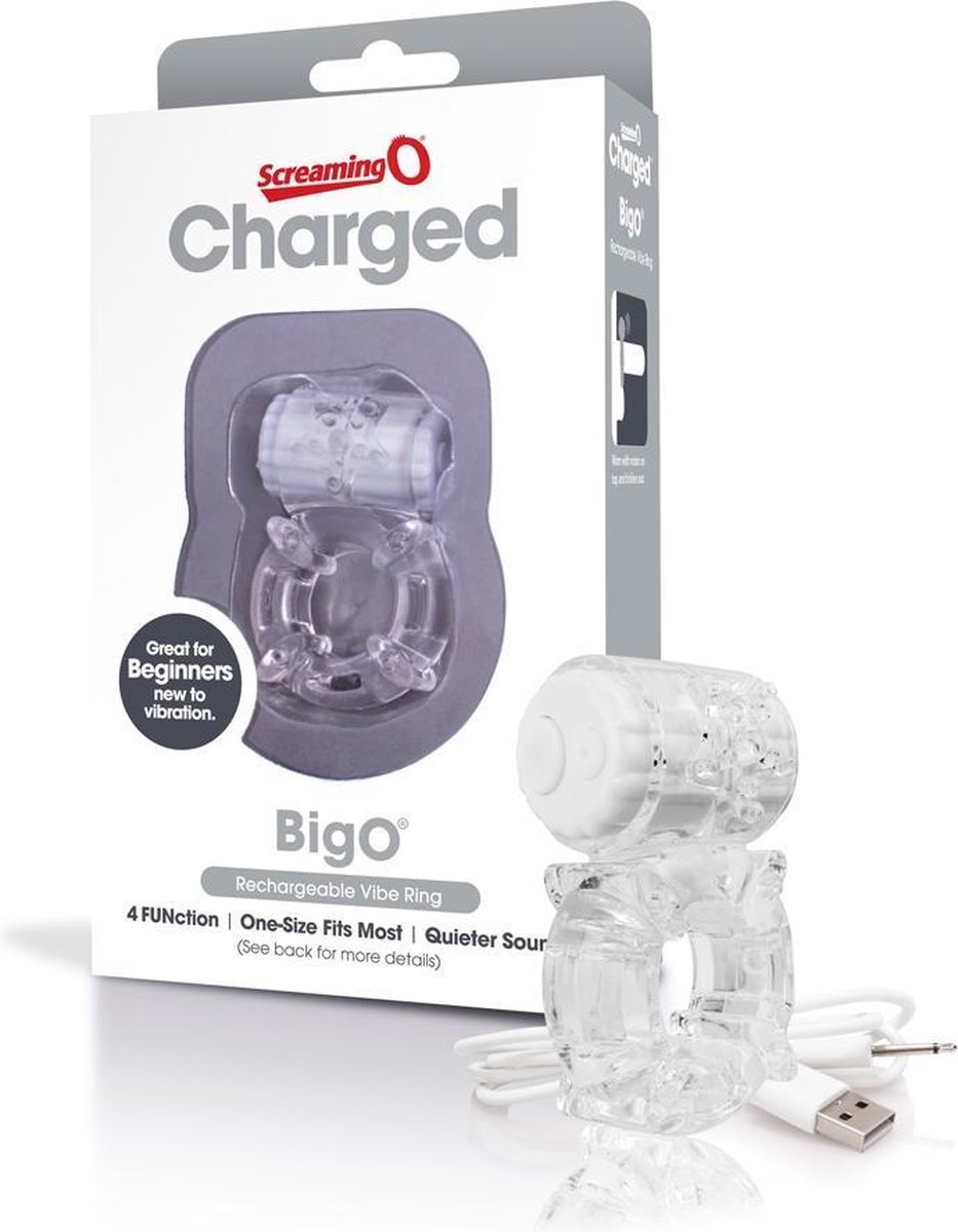 De Charged BigO is een oplaadbare penisring voor beginners met een krachtige, compacte motor met drie vibratiesnelheden en een bonus pulsatie, met een stiller geluid. De rekbare penisring met structuur blijft goed op z'n plek zodat beide partners kunnen genieten van de versterkte sensaties. De bijgeleverde USB kabel blijft goed zitten en werkt meer dan 60 minuten op een volle batterij. De penisring is gemaakt van lichaamsveilige SEBS en ABS plastic dat door het lab uitvoerig is getest. De Charged BigO verlengt de erectie en stimuleert de clitoris, zodat het voor koppels een plezierige en bevredigende ervaring is!