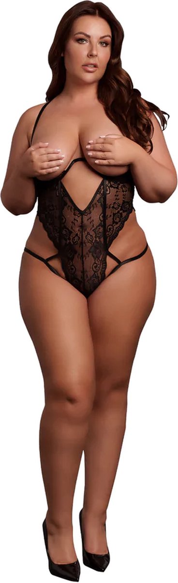 Deze open cup bodysuit met beugel en open beugel in zwart is voorzien van verstelbare schuifregelaars voor een getailleerde pasvorm. Ontworpen om uw rondingen te accentueren, combineert het elegantie en verleiding voor een boeiende look. Verkrijgbaar in maat XL tot 4XL lees meer over dit product