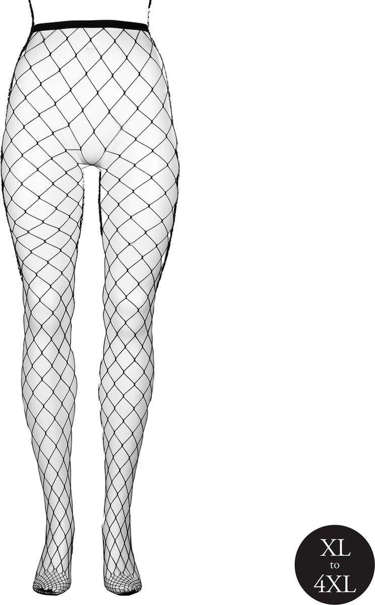 Panty versierd met breed visnetpatroon en elastische tailleband. De zachte en super rekbare stof past in de maten XL tot 4XL.
