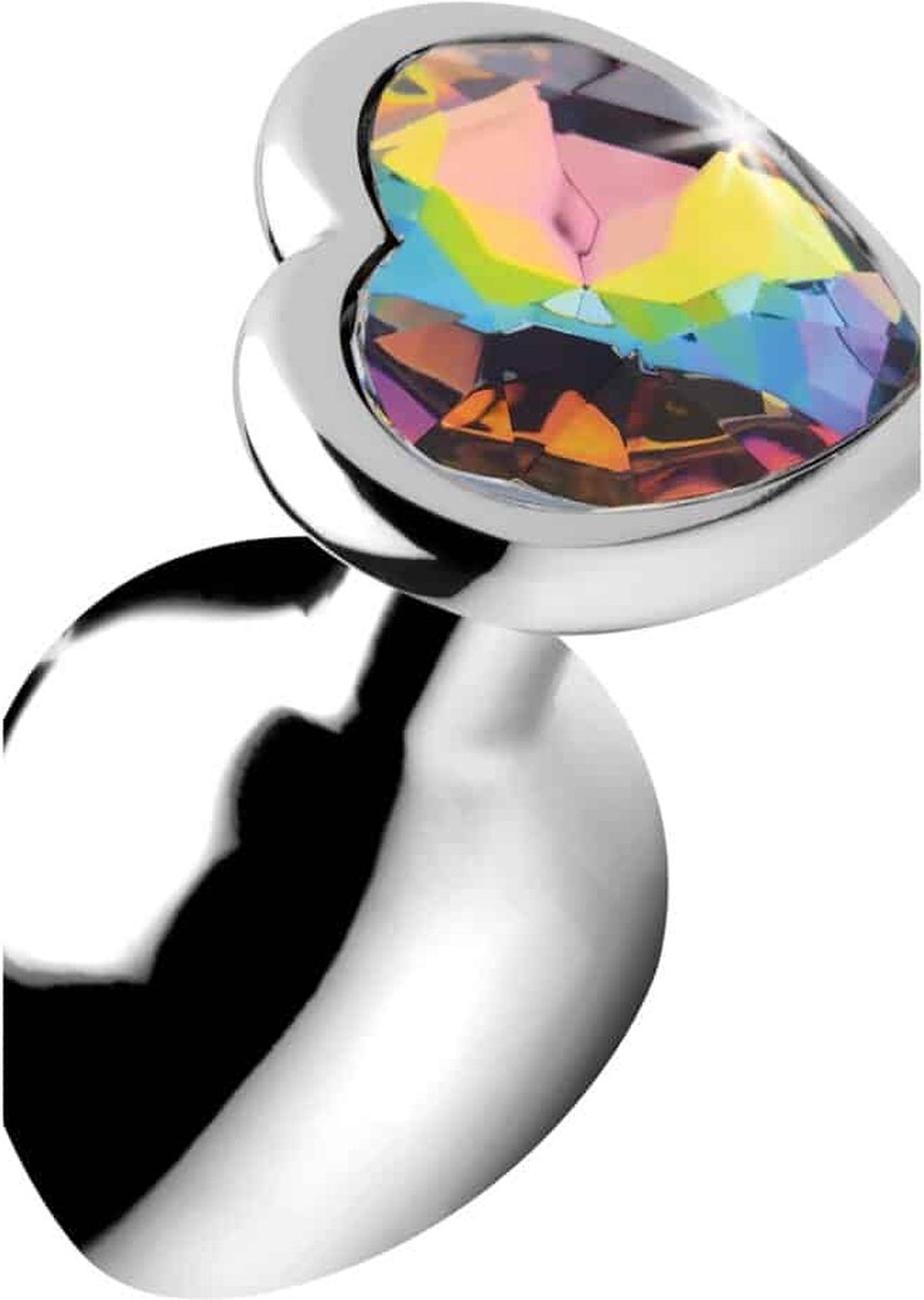 Deze verrassende Rainbow Heart Buttplug is een luxe toy voor anaal gebruik en door de afmeting geschikt voor zowel beginners als gevorderden. De mooie hartvormige regenboogsteen schittert tussen je billen terwijl jij optimaal geniet van een heerlijk vol gevoel. Deze buttplug is door het aluminium ook te gebruiken voor temperature-play. Door de platte onderkant is de plug veilig in te brengen en langer te dragen. Gebruik altijd... lees meer over dit product