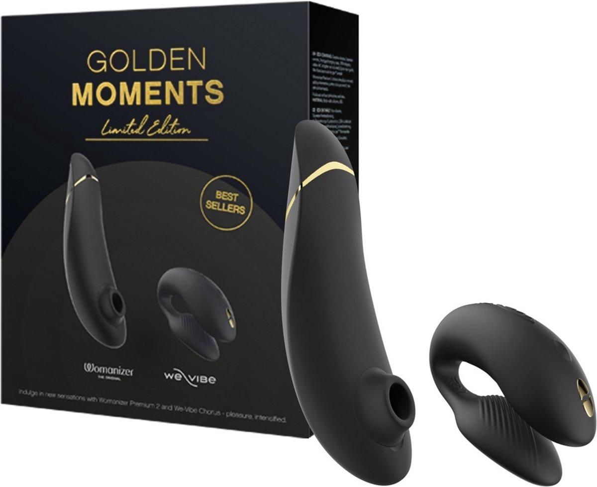 2 speeltjes van topkwaliteit - 1 prijs! Womanizer Premium 2 & We-Vibe Chorus Pulsator & koppel vibrator voor all-round verwennerij Oplaadbaar - incl. USB-oplaadkabel 2 speeltjes van topkwaliteit voor een onverslaanbare prijs!Limited Edition Set Golden Moments van Womanizer met 2 ultieme toy bestsellers voor wellustig single en koppel spel:- 1 x Womanizer Clitoris Stimulator Premium 2Waterdichte pulsator/drukgolfstimulator m... lees meer over dit product