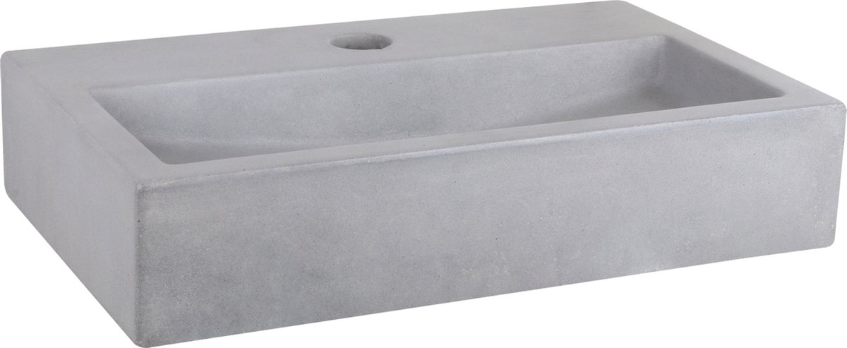 Het strak afgewerkte licht betonnen wasbakje Flat heeft het kraangat in het midden. Het beton is verstevigd met glasfiber en is voorzien van een waterafstotende coating. Disclaimer: dit wasbakje is minder geschikt in combinatie met onze gebogen en kruis kranen. Bij een combinatie met één van deze kranen bestaat er, vanwege de lengte van de kraan en diepte van het bakje, kans op spatwater over de rand.