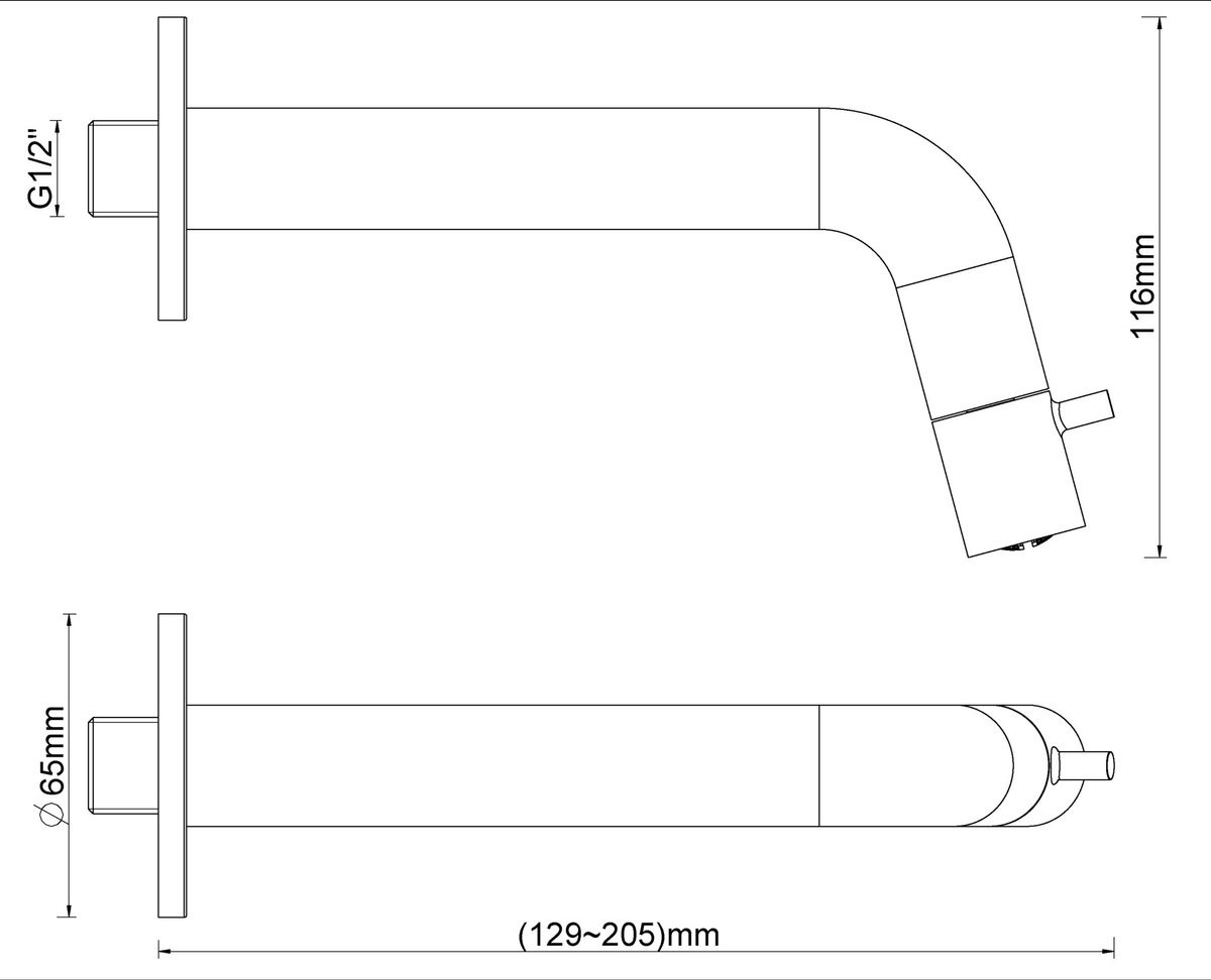 - Voorsprong uitloop: 205 mm