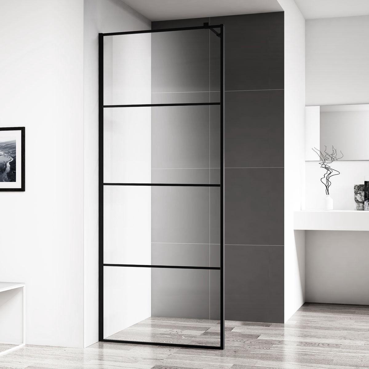 Wiesbaden Wiesbaden Horizon inloopdouche met raster 1000 x 2000 x 8 mm nano helder glas/mat 20.3522 - Zwart
