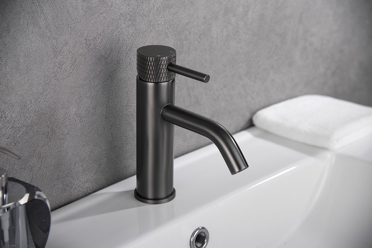 Wiesbaden Ribbd wastafelkraan met coldstart gunmetal 29.5304