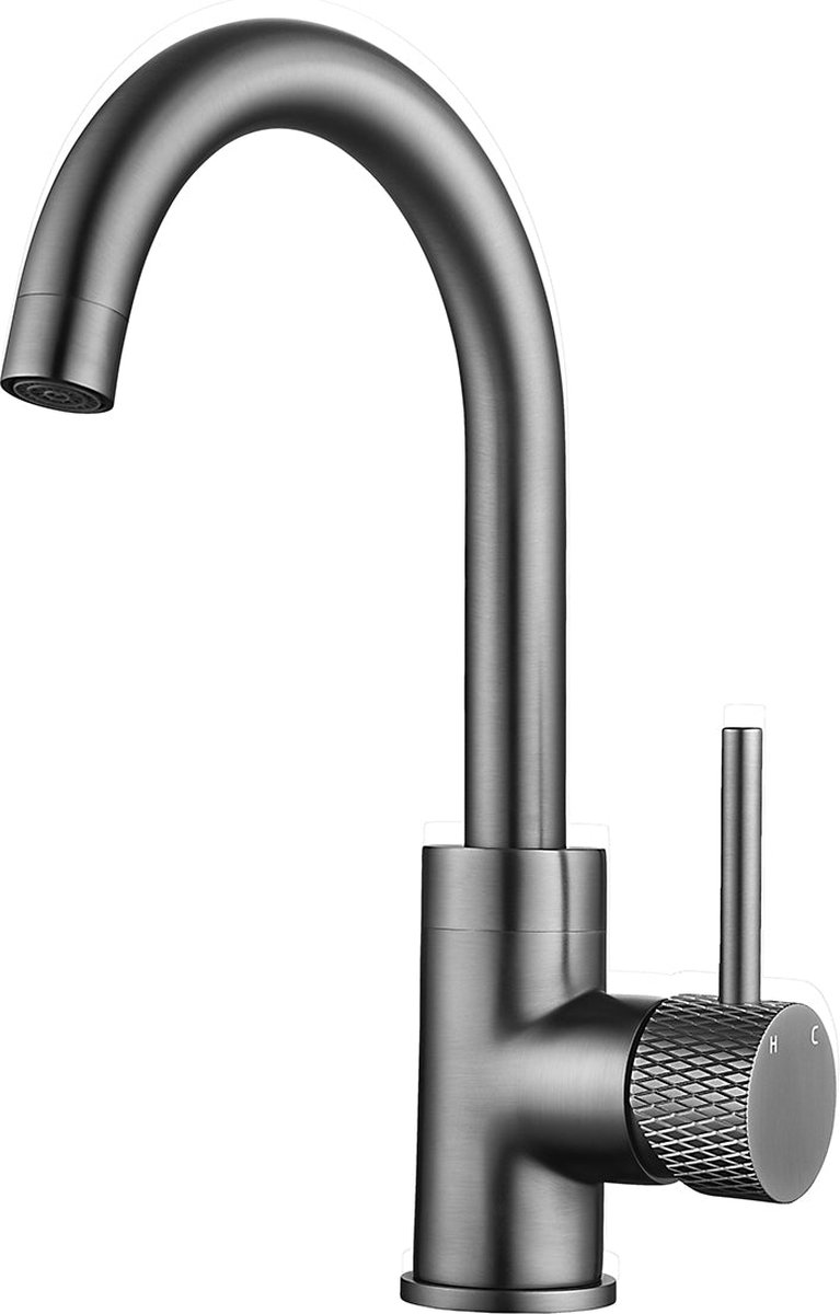 Wiesbaden Ribbd wastafelkraan met draaibare uitloop gunmetal 29.5323