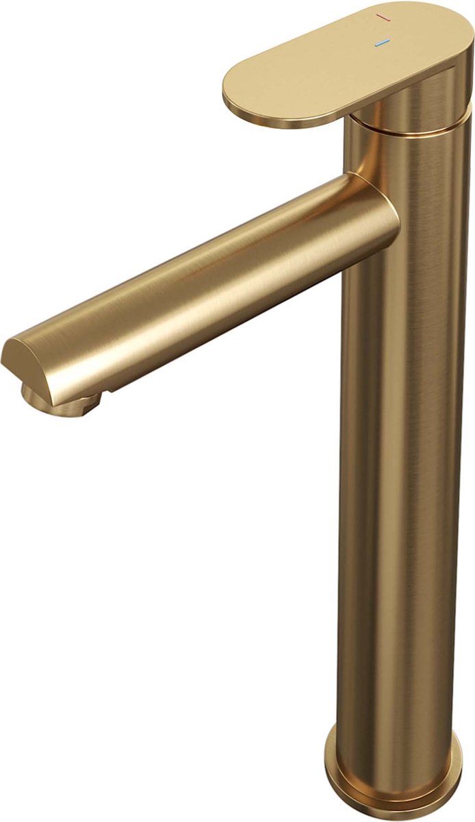 Wastafelmengkraan Brauer Gold Edition Opbouw Verhoogd met Coldstart Dunne Brede Hendel Geborsteld Goud Deze stijlvolle wastafelkraan van Brauer Gold Edition geeft uw badkamer een luxueuze touch door zijn gouden kleur. Deze variant heeft een dunne brede hendel om de kraan mee te bedienen. U beweegt de hendel omhoog om de kraan open te draaien en u draait de hendel naar de het blauwe streepje voor koud water en naar het rode str... lees meer over dit product