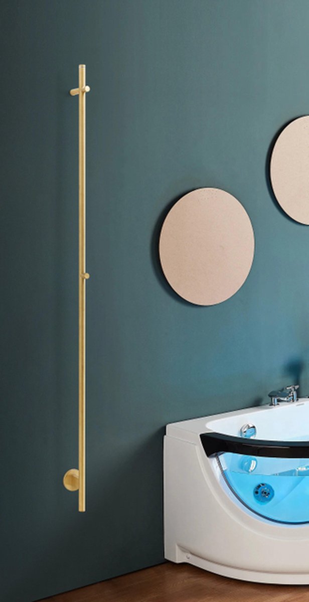Rosani ONE Elektrische Handdoekradiator 170cm hoog - 30Watt - geborsteld messing De Rosani ONE Elektrische Handdoekradiator is de perfecte aanvulling voor jouw badkamer. Met zijn afmetingen van 170x2.5x9cm past deze handdoekradiator in elke ruimte. Gemaakt van hoogwaardig RVS316, biedt het niet alleen duurzaamheid maar ook een moderne uitstraling. Dankzij het elegante ontwerp en de compacte afmetingen is deze radiator zowel fu... lees meer over dit product