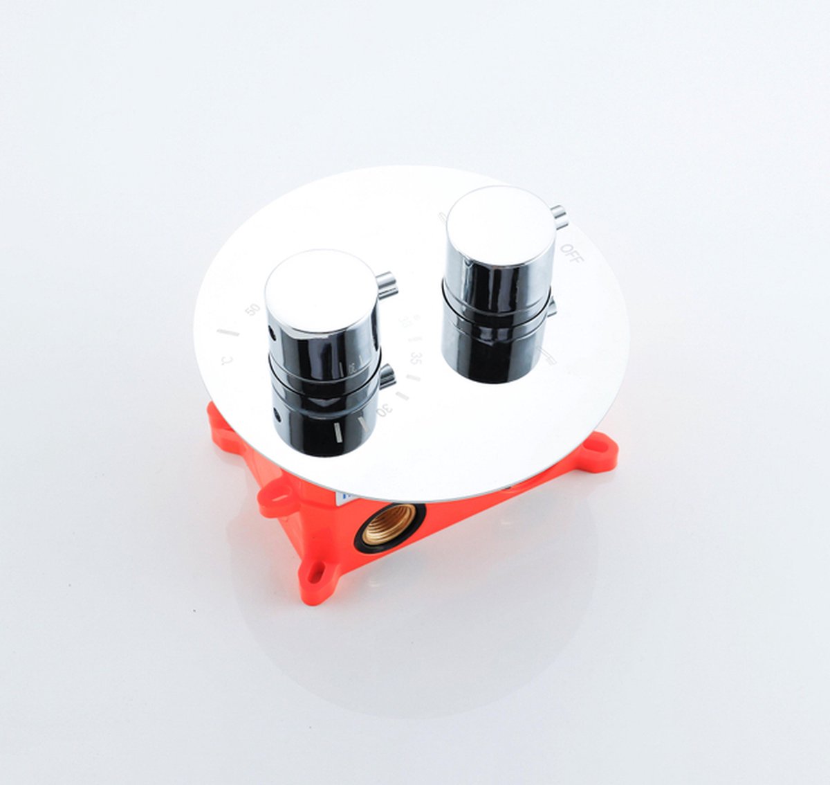 De Fortifura Calvi Thermostatische Inbouwkraan - inbouwdeel - rond - chroom is een prachtig vormgegeven toevoeging aan elke badkamer. Met zijn strakke en moderne design zal deze thermostatische inbouwkraan een ware eyecatcher zijn in jouw badkamer. De chroomafwerking geeft een luxe uitstraling en past perfect bij verschillende badkamerstijlen. Niet alleen is deze inbouwkraan een visueel aantrekkelijke keuze, maar ook zijn functionaliteit en duurzaamheid maken het een uitstekende toevoeging aan jouw badkamer.