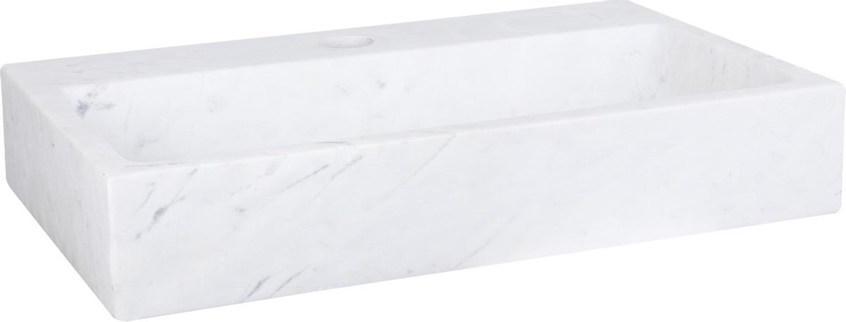 Het elegante wit marmeren wasbakje Flat heeft het kraangat in het midden. Het wit marmer is een natuurlijk materiaal wat een zeer luxe uitstraling aan uw toiletruimte geeft. Disclaimer: dit wasbakje is minder geschikt in combinatie met onze gebogen en kruis kranen. Bij een combinatie met één van deze kranen bestaat er, vanwege de lengte van de kraan en diepte van het bakje, kans op spatwater over de rand. lees meer over dit product