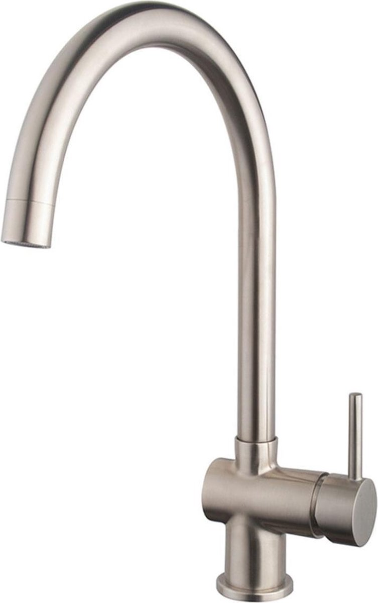 Deze Caral keukenkraan van Xellanz Sanitair heeft een RVS Look kleur en is eenvoudig in zijn gebruik door de eenhendel bediening. In combinatie met andere staal elementen van Xellanz Sanitair creëert u een moderne eenheid in uw badkamer. De mooie hoge gebogen uitloop is super praktisch, omdat u hierdoor veel ruimte heeft tussen de uitloop en de gootsteen. Met deze keukenkraan kiest u voor een strakke look en feel.