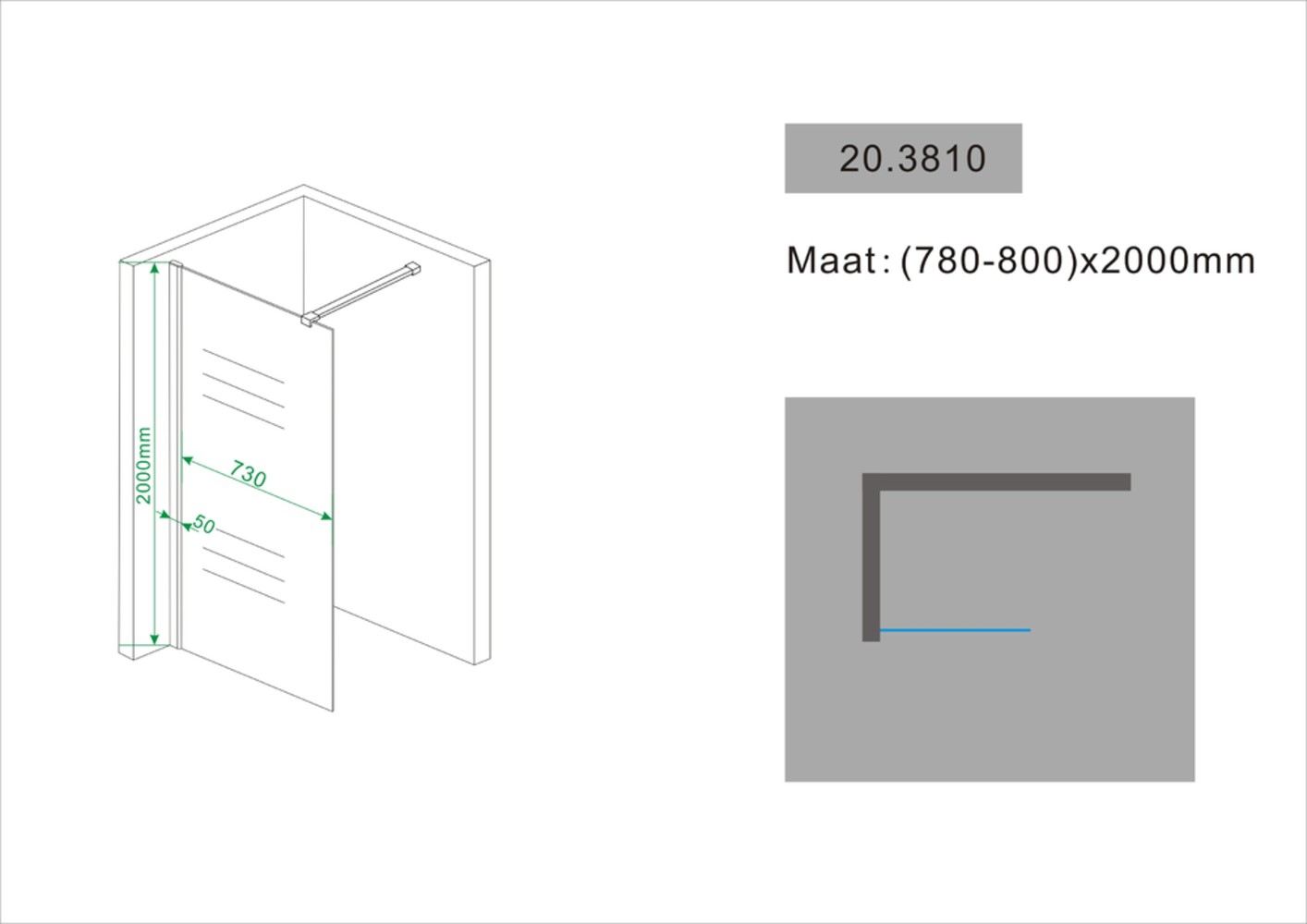 Zeer fraaie Inloopdouche 80cm breed 200cm hoog inclusief chroom zijprofiel en chroom stabilisatiestang van 100 cm10mm NANO veiligheidsglas voor het tegengaan van kalkafzetting op de glaswand.Verstelbaar van 78 cm - 80 cmNANO-coating:Op microscopisch niveau ziet de wereld er heel anders uit. In het geval van glas is er dan te zien dat een product gemaakt van glas heel veel kleine open poriën heeft. Door deze poriën kunnen vuil... lees meer over dit product