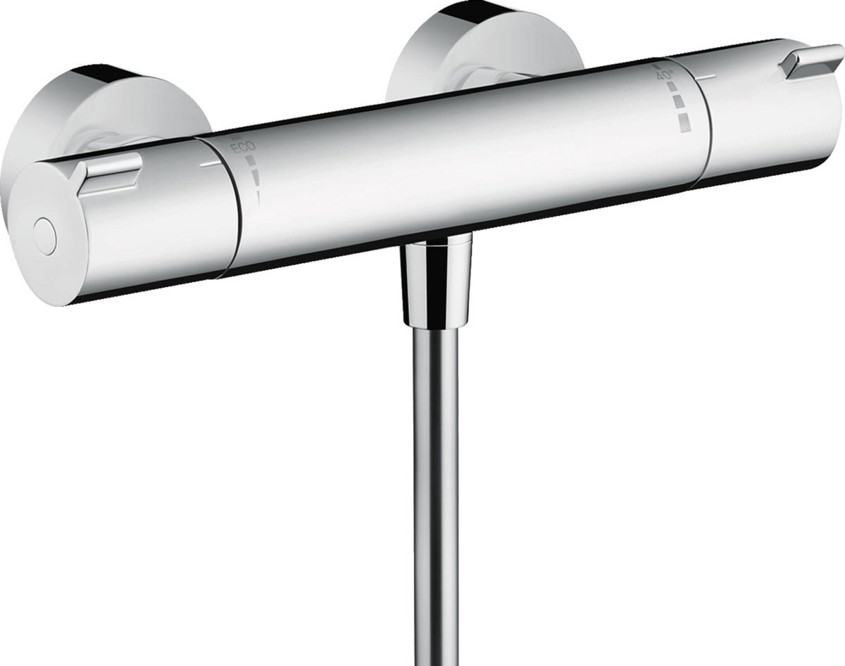 Betrouwbare douchethermostaat van een kwaliteitsmerk (opbouw) De Ecostat 1001 CL douchethermostaat van hansgrohe brengt comfort en elegant design in huis. De waterhoeveelheid en -temperatuur kunnen met de ergonomische grepen snel en makkelijk worden ingesteld. Daarna houdt de thermostaat het water steeds op de gewenste temperatuur en regelt bij plotselinge drukverschillen bliksemsnel. Dat voorkomt te warm of te koud water. Ext... lees meer over dit product