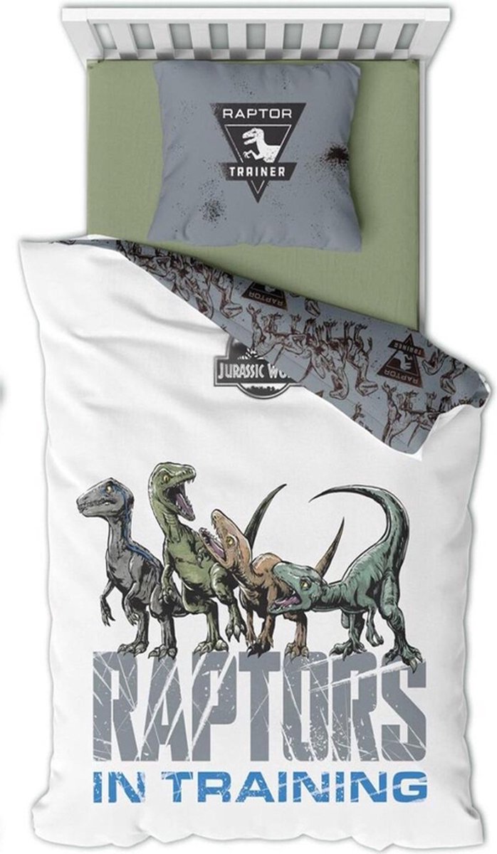 Jurassic World Dekbedovertrek, Raptors in Training. Mooi eenpersoons dekbedovertrek met een afbeelding van Velociraptors die je misschien wel herkent van de Jurassic World films. Voor liefhebbers is dit een must-have voor de slaapkamer. Herken jij Blue? De achterkant heeft een ander dessin van de Raptors, wat een leuk effect geeft als je het bed openslaat.