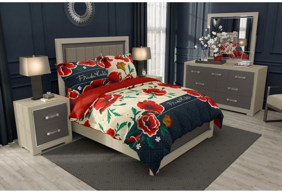 " Breng de iconische kunst van Frida Kahlo tot leven met dit stijlvolle katoenen dekbedovertrek. Rijkelijk versierd met mooie klaprozen, geïnspireerd op de bloemen die vaak te zien is in de kunst van Frida Kahlo en welke symbool staan voor zowel kracht als schoonheid. Dit katoenen 1-persoons dekbedovertrek heeft een dubbelzijdige bedrukking en wordt compleet gemaakt door het extra grote kussensloop. Ben je op zoek naar een ori... lees meer over dit product