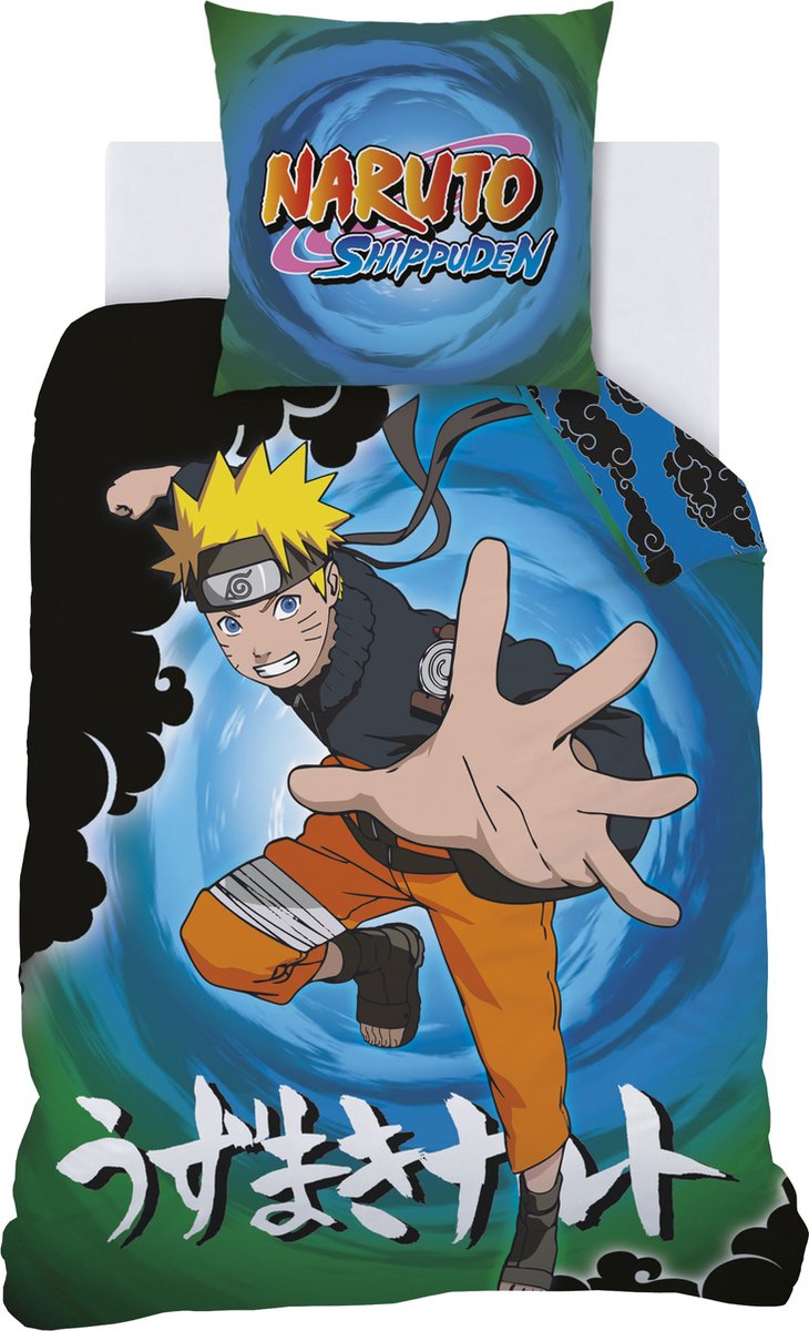 Naruto Dekbedovertrek, Black Clouds. Stoer dekbedovertrek van de ninja Uzumaki Naruto. Bekend van de gelijknamige manga-serie. Deze rebelse tiener droomt ervan om de volgende Hokage te worden, maar komt op zijn pad daarnaar toe nog wel eens wat weerstand tegen, zoals deze donkere wolken. Zal hij het redden? Dit fijne katoenen dekbedovertrek is in elk geval een echte blikvanger voor elke slaapkamer. Voorzien van een dubbelzijdige bedrukking, wat leuke mogelijkheden geeft bij het opmaken van het bed. Een geweldig cadeau voor elke liefhebber van Manga, Animé en Naruto voor een verjaardag of de feestdagen.