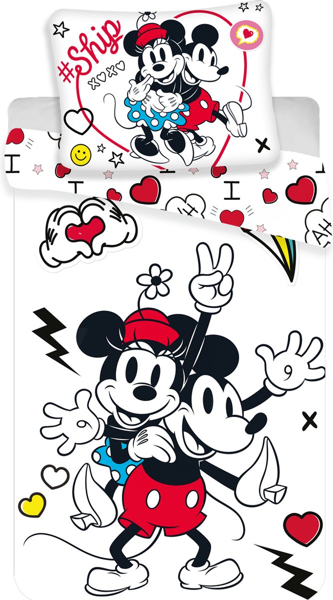 Disney Minnie Mouse Dekbedovertrek Retro Heart. Wat een throwback! Op dit dekbedovertrek zijn Mickey en Minnie getekend zoals op de allereerste tekenfilms van Walt Disney. Dit dekbed hoort thuis in de slaapkamer van iedereen die van retro houdt!