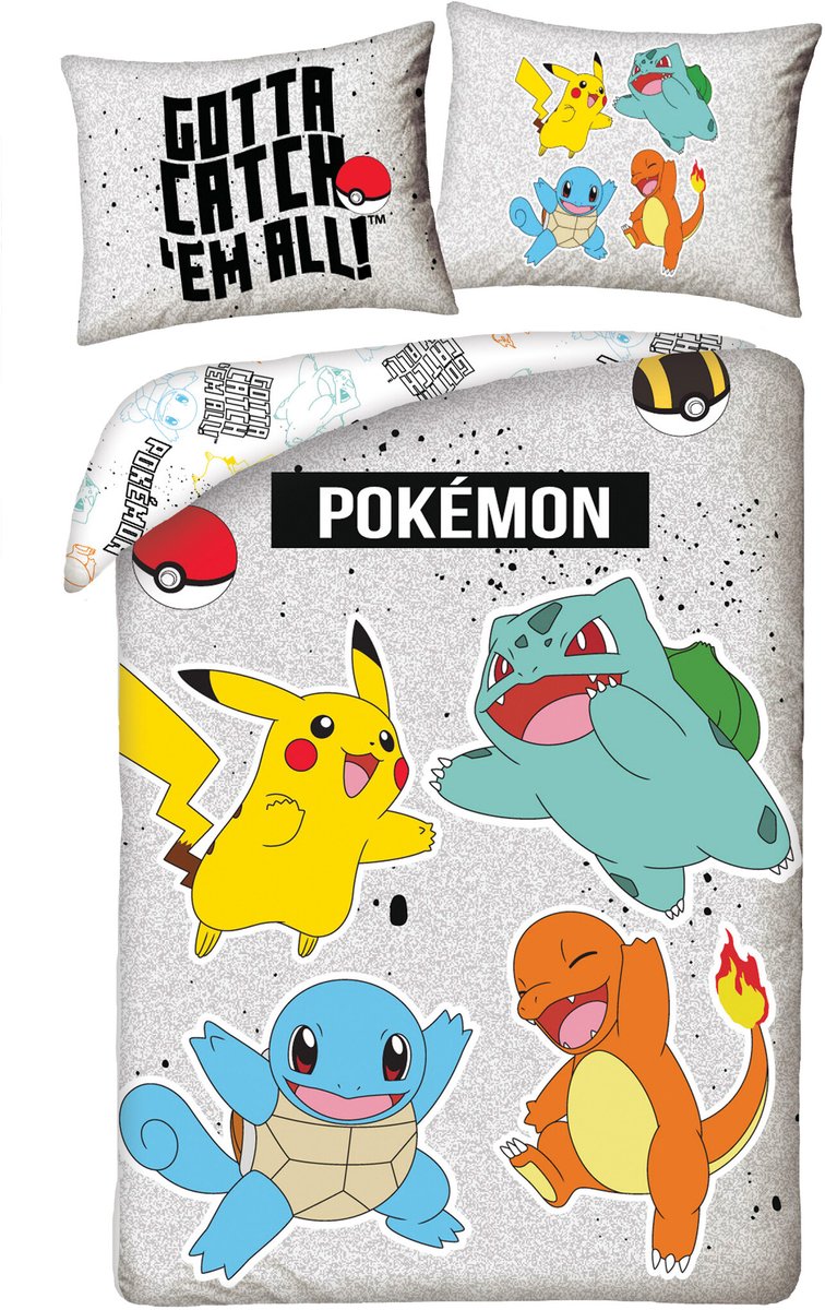 Pokémon Charmander Dekbedovertrek 140 x 200 cm (70 x 90 cm). Zij hebben wel een dagje rust verdiend! Dit gave katoenen dekbedovertrek van een paar van de bekendste Pokémon karakters erop, is een echte musthave voor de die-hard Pokémon fan. Hiermee haal je een echte blikvanger in huis. Mede door het extra grote kussensloop en de tweezijdige bedrukking van het overtrek. Leuk om eens af te wisselen met het opmaken van het bed. Kortom; een leuk item om cadeau te doen óf te krijgen!
