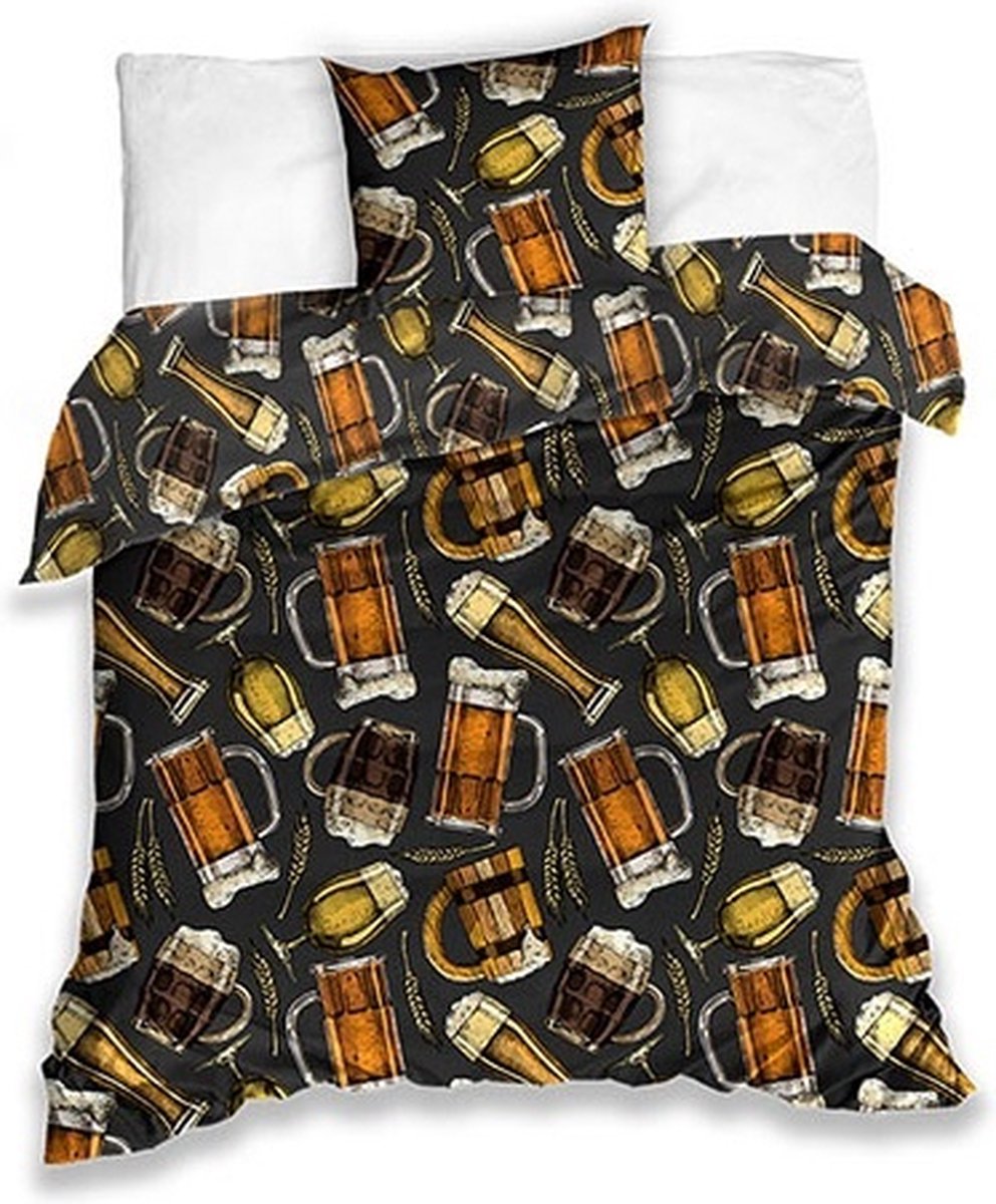 Bier Dekbedovertrek, Proost. Het ultieme eenpersoons dekbedovertrek voor de bierliefhebber! Houd jij wel van een lekker koud biertje na een lange dag werken? Of weet jij alles af van verschillende soorten bier? Dan mag dit dekbed niet ontbreken in jouw slaapkamer! Het dekbedovertrek en de extra grote kussensloop bevat afbeeldingen van diverse soorten bierglazen. Kan jij ze allemaal herkennen? Een geweldig cadeau idee voor alle bier-fans, voor bijvoorbeeld een verjaardag of de feestdagen!