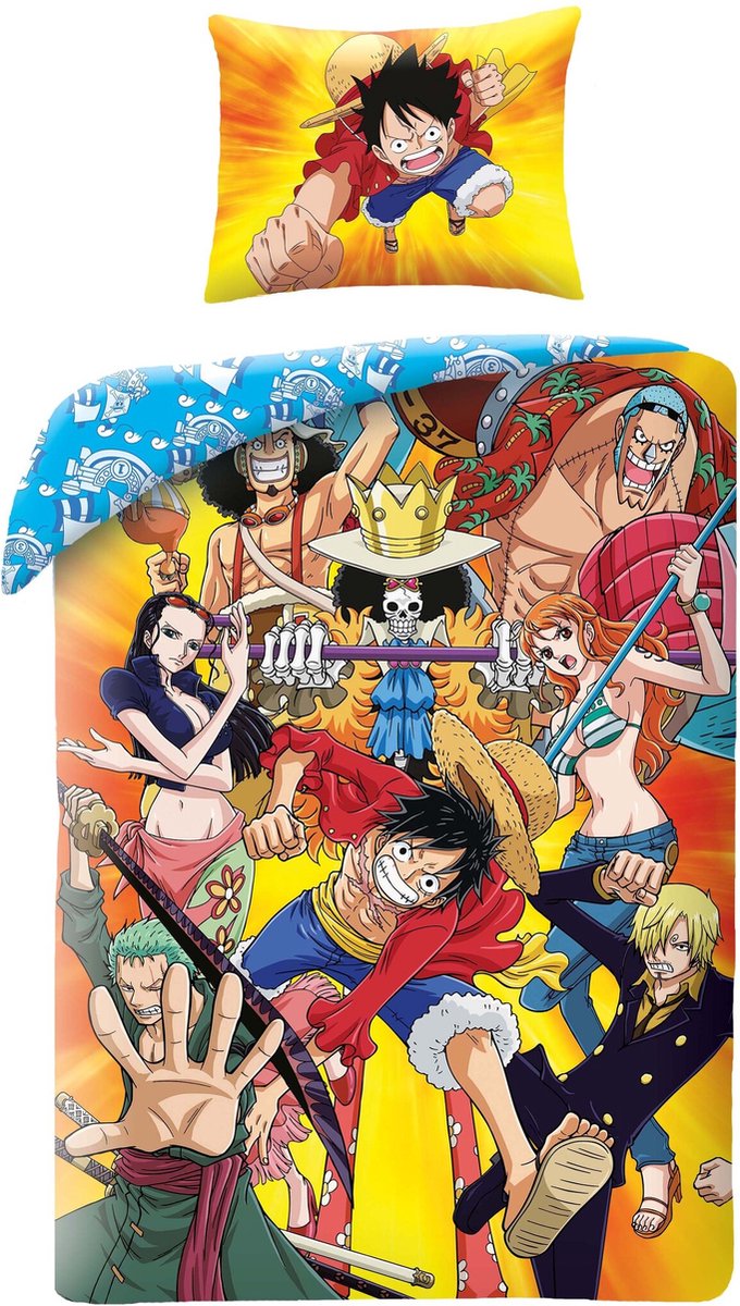 One Piece Dekbedovertrek, Grand Line. Waanzinnig polyester dekbedovertrek van Monkey D. Luffy; de aanvoerder van de Strawhat Pirates. Zal het ze lukken de ultieme schat, One Piece, te vinden? Met deze kleurrijke set heb jij een gegarandeerde blikvanger te pakken. De set heeft een tweezijdige bedrukking en wordt compleet gemaakt door de bijpassend, extra grote, kussensloop. Een geweldige cadeau idee voor elke liefhebber van animé en de serie One Piece. Wie maak jij hier blij mee?