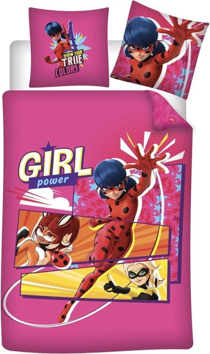 Miraculous Dekbedovertrek, Girl Power. Een geweldig dekbedovertrek van de populaire serie Miraculous. Deze vrouwelijke superhelden weten elk kwaad te bestrijden met hun superkrachten. Ladybug en haar vriendinnen staan op dit fijne dekbedovertrek, wat een aanwinst is voor elke stoere kinderkamer. Zowel het overtrek als het kussen zijn dubbelzijdig bedrukt wat meerdere mogelijkheden geeft bij het opmaken van het bed. Een fantastische cadeau suggestie voor een verjaardag of de feestdagen.