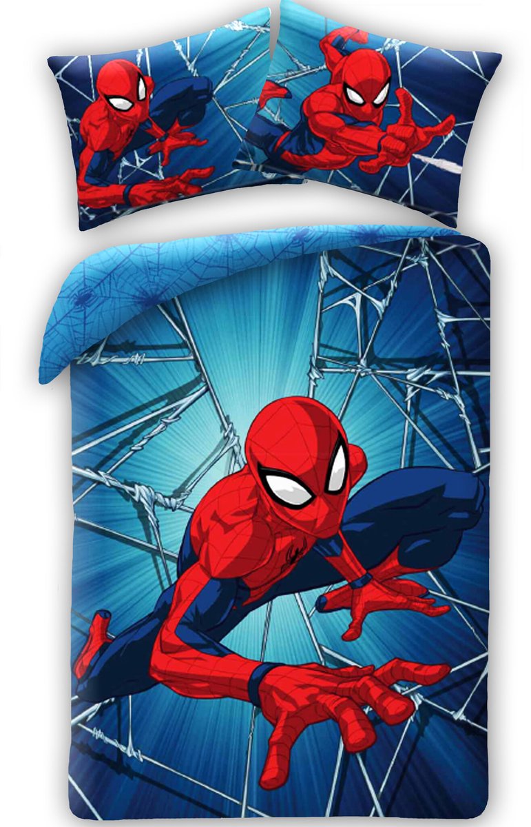 Waanzinnige blikvanger voor de stoere kinderkamer! Dit gave katoenen Spider-Man dekbedovertrek is een echte must-have voor alle jonge Spiderman en superhelden fans. Het dekbedovertrek heeft een opvallen design en is dubbelzijdig bedrukt, net als het bijpassende kussensloop. Hierdoor kan er tevens afgewisseld worden met de opmaak van het bed. Droom jij van echte heldendaden? Dan is dit dekbedovertrek een onmisbaar item. Ook leuk om cadeau te geven aan de echte fans voor een verjaardag of andere feestelijke dag.