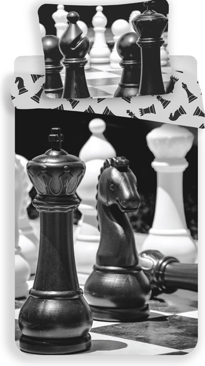 Dekbedovertrek, Schaken - Eenpersoons - 140 x 200 cm - Katoen