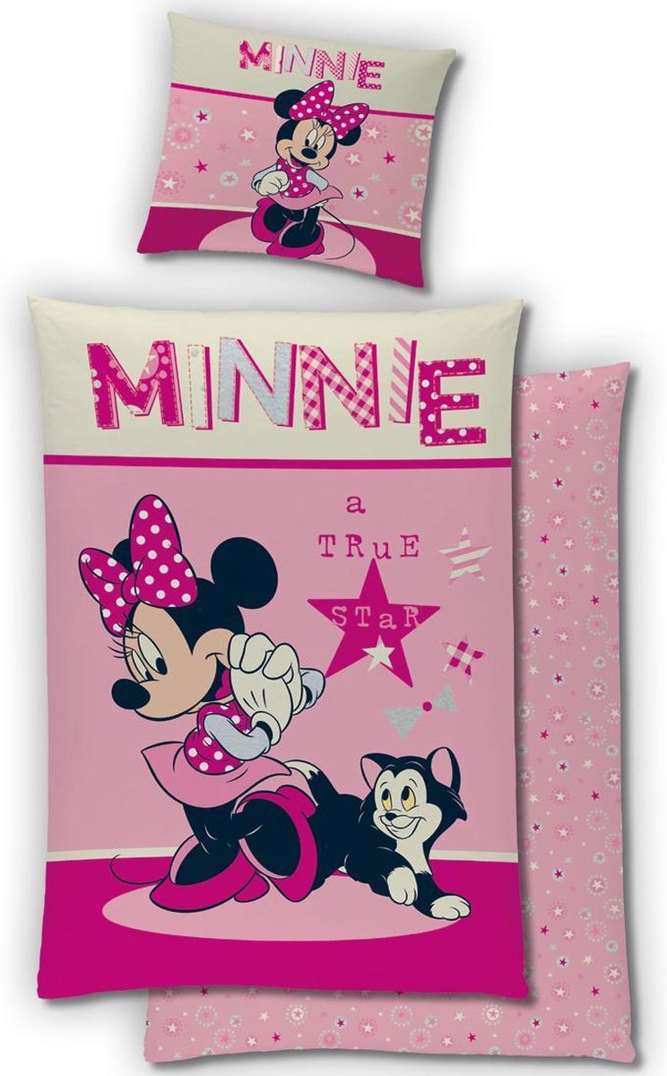 Disney Minnie Mouse Dekbedovertrek. Dit mooie eenpersoons dekbedovertrek is op de voorzijde bedrukt met een print van Minnie Mouse, schattig! De achterzijde wordt opgevuld met allerlei vormen in leuke kleuren. Op de kussensloop komt Minnie Mouse nog een keer voor, dit keer met haar kat Figaro! Wat een lief dekbedovertrek. Ben jij een fan van Minnie Mouse en Figaro? Dan is dit dekbedovertrek perfect voor jou!