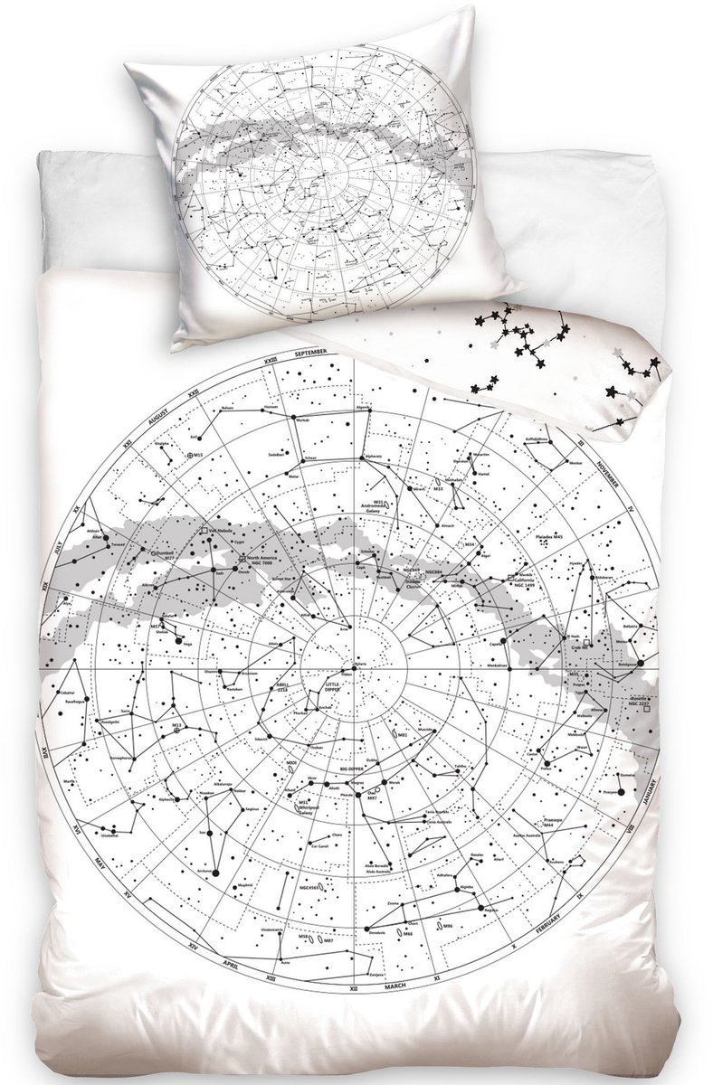 Dreame3 dekbedovertrek, Globe. Waanzinnig mooi katoenen dekbedovertrek van ons sterrenstelsel: de Melkweg. Kan jij alle sterren benoemen en ben je uren bezig met het staren naar de sterren? Is je droom ooit om astronaut te worden? Dan mag dit katoenen dekbedovertrek van een kaart van het Melkweg niet in je collectie ontbreken! Een geweldige blikvanger voor elke kinder -of tienerkamer. De overtrek is voorzien van een dubbelzijdige print, wat leuke opties geeft bij het opmaken van het bed. De set wordt compleet gemaakt door de bijpassende, extra grote, kussensloop. Een fantastisch cadeau-idee voor elke sterren-liefhebber voor een verjaardag of de feestdagen.