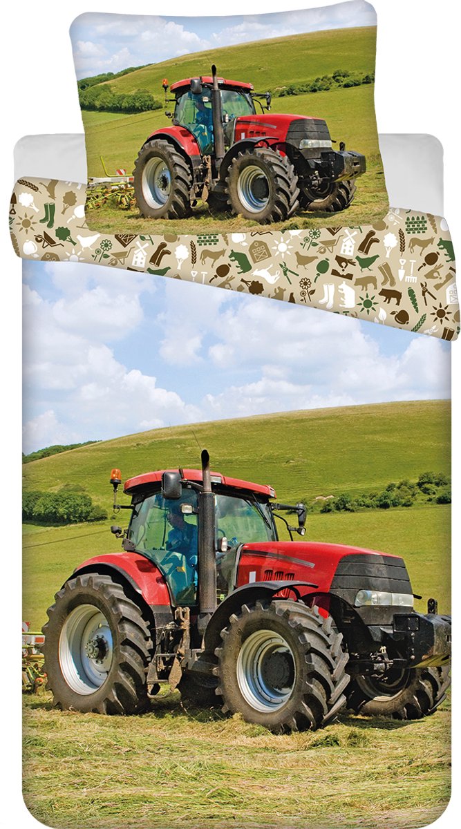 Sweet Home Dekbedovertrek, Tractor. Dromen van een leven op de boerderij! Dat kan met dit stoere dekbedovertrek met een afbeelding van een waanzinnige tractor. De achterzijde van het overtrek is voorzien van diverse boerderij-afbeeldingen, zoals een koe, een schuur, kruiwagen en kippen. Gemaakt van 100% katoen, wat heerlijk zacht aanvoelt en blijft aanvoelen. De set wordt compleet gemaakt door het extra grote kussensloop. Ben je op zoek naar een leuk dekbedovertrek voor een thema-kamer of voor een liefhebber van tractors? Zoek dan niet verder! Perfect om cadeau te geven voor een verjaardag of andere feestdag.