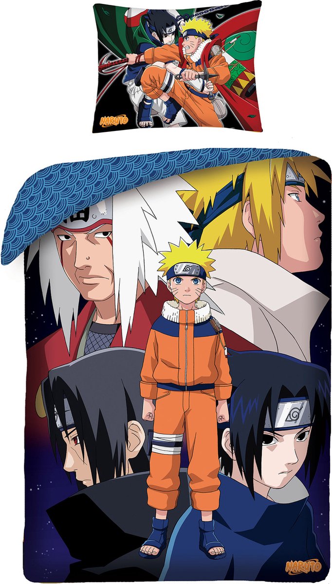 Naruto Dekbedovertrek Clouds. Op dit dekbedovertrek zien we Haruno Sakura, Uchiha Itachi, Hatake Kakashi en natuurlijk Naruto Uzumaki. Ze staan in een super coole opstelling tegen de blauwe achtergrond welke is voorzien van een gaaf patroon van wolken.