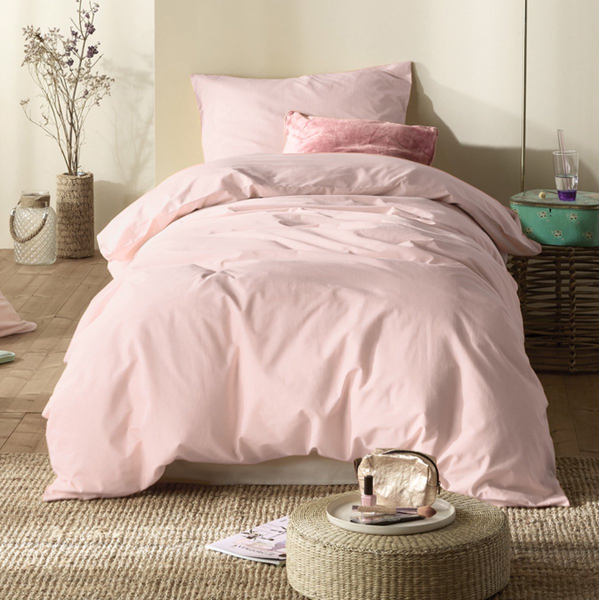 Dekbedovertrek Basil Pearl Pink - Eenpersoons - 140 x 220 cm - Katoen
