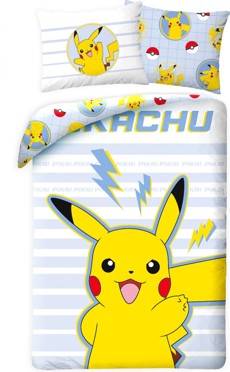Pikachu Dekbedovertrek stripes 140 x 200 cm Pokémon Dekbedovertrek Pikachu 140 x 200 cm (65 x 65 cm) . Zij hebben wel een dagje rust verdiend! Dit gave katoenen dekbedovertrek van een paar van de bekendste Pokémon karakters erop, is een echte musthave voor de die-hard Pokémon fan. Hiermee haal je een echte blikvanger in huis. Mede door het extra grote kussensloop en de tweezijdige bedrukking van het overtrek. Leuk om eens af t... lees meer over dit product