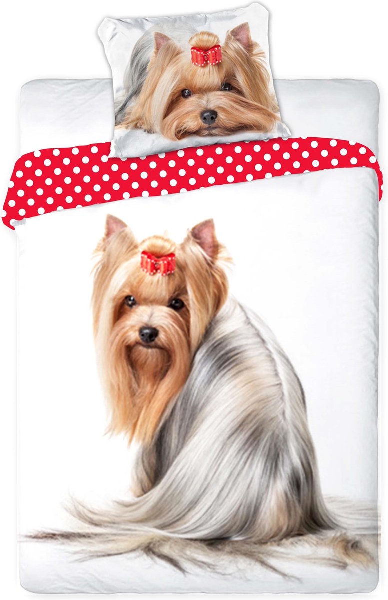Animal Pictures Dekbedovertrek, Yorkshire Terriër. Mooi eenpersoons katoenen dekbedovertrek van ontzettend leuk hondje. De achterkant van het dekbedovertrek is bedrukt met een stippen motief. Leuk voor elke liefhebber van deze mooie dieren.