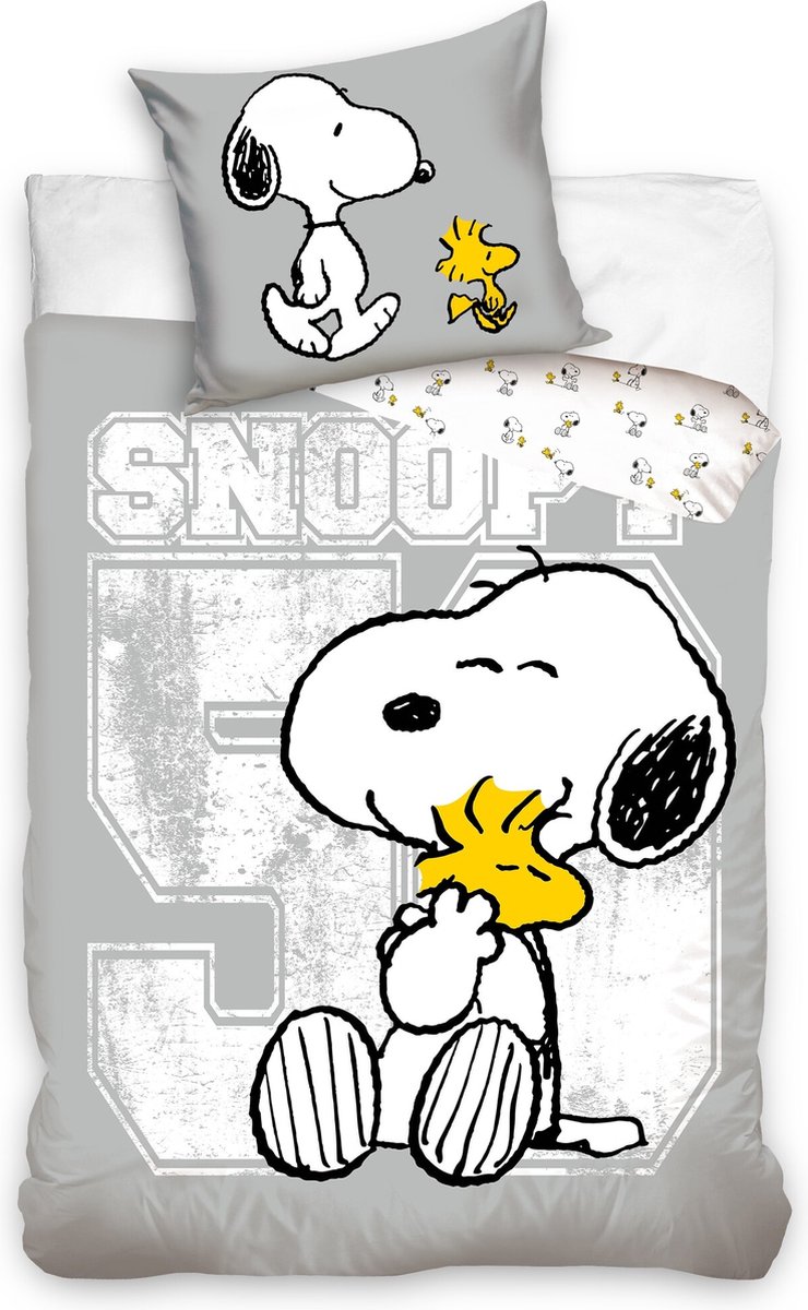 Snoopy dekbedovertrek hug 140 x 200 cm grijs - katoen Specificaties:Kleur: WitGeslacht: juniorMateriaal: 100% katoenAfmetingen dekbedovertrek: 140 x 200 cm (L x B)Afmetingen kussensloop: 60 x 70 cm / 70 x 90 cm Inhoud:1 Dekbedovertrek1 Kussensloop lees meer over dit product