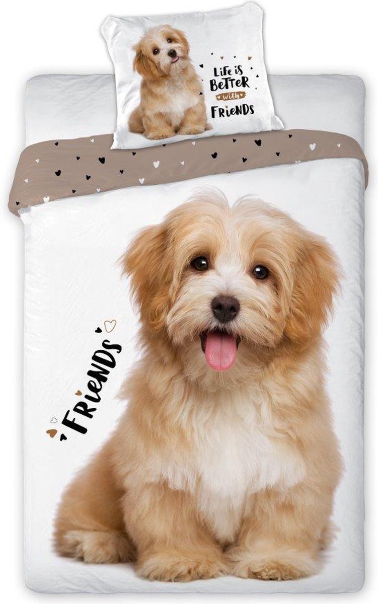 Animal Pictures Dekbedovertrek, Friends. Een dekbedovertrek met een hoge aaibaarheidsfactor! Een geweldig dekbedovertrek van een leuke, langharige pup. Een leuke aanvulling voor elke slaapkamer. De set is gemaakt van katoen, heeft een dubbelzijdige bedrukking en wordt geleverd met een extra groot kussensloop. Een leuk cadeau voor een verjaardag voor elke hondenliefhebber!