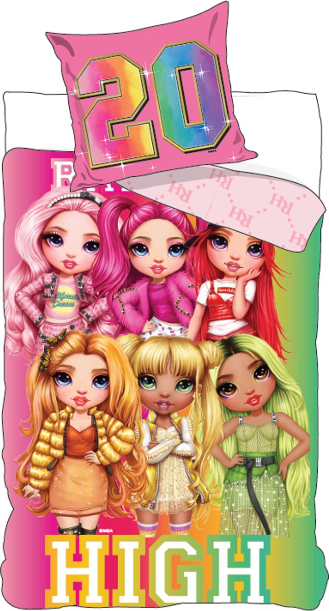 Rainbow High Dekbedovertrek Squad 140 x 200 cm - Katoen 70 x 90 cm Specificaties:EenpersoonsGrootte: 140 x 200 cmMateriaal: 100% katoenKussensloop: 70 x 90 cmWasbaar op 40 gradenGeschikt voor wasdrogerWassen voor gebruik Inhoud:1 Dekbedovertrek1 Kussensloop lees meer over dit product
