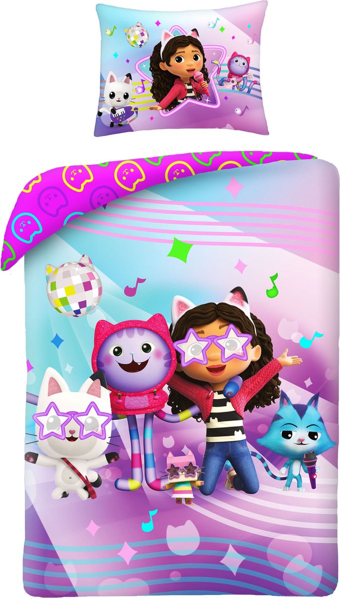 Gabby Dollhouse dekbedovertrek Sunglasses 140 x 200 cm - Katoen - 70 x 90 cm Materiaal: 100% katoen Maat: 140x200 Inclusief sloop van 70x90 cm De print staat op het kussensloop en dekbedovertrek Het dekbedovertrek is dubbelzijdig te gebruiken, dus wil je een keer een andere print, dan draai je hem gewoon even om Inhoud:1 Dekbedovertrek1 kussensloop lees meer over dit product