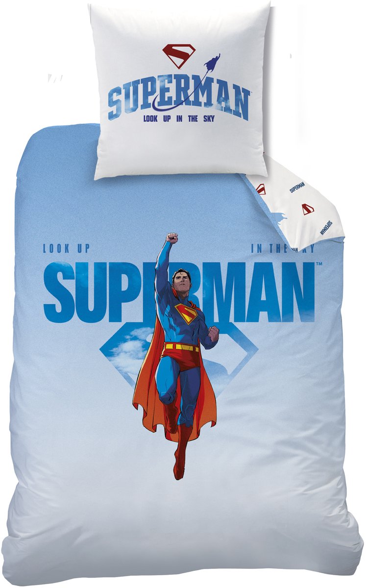 Het overtrek is gemaakt van zacht katoen en voelt heerlijk comfortabel aan, terwijl de dubbelzijdige bedrukking zorgt voor een levendige en vrolijke uitstraling, zowel overdag als 's nachts. Het bijpassende kussensloop van 63 x 63 cm maakt de set compleet en laat elke fan van de Man van Staal glimlachen bij het opmaken van het bed.