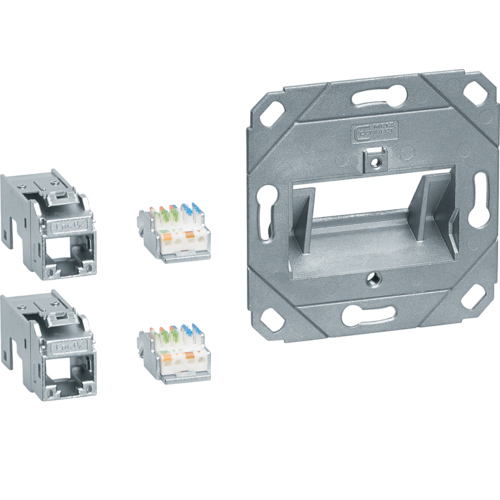 Aansluiting module 2x RJ45, Cat. 6a, voor centrale schijf UAE 2-voudig, hfr. Set bestaande uit: Montageframe voor het opnemen van twee modulaire aansluiteenheden met een maximale modulebreedte van... lees meer over dit product
