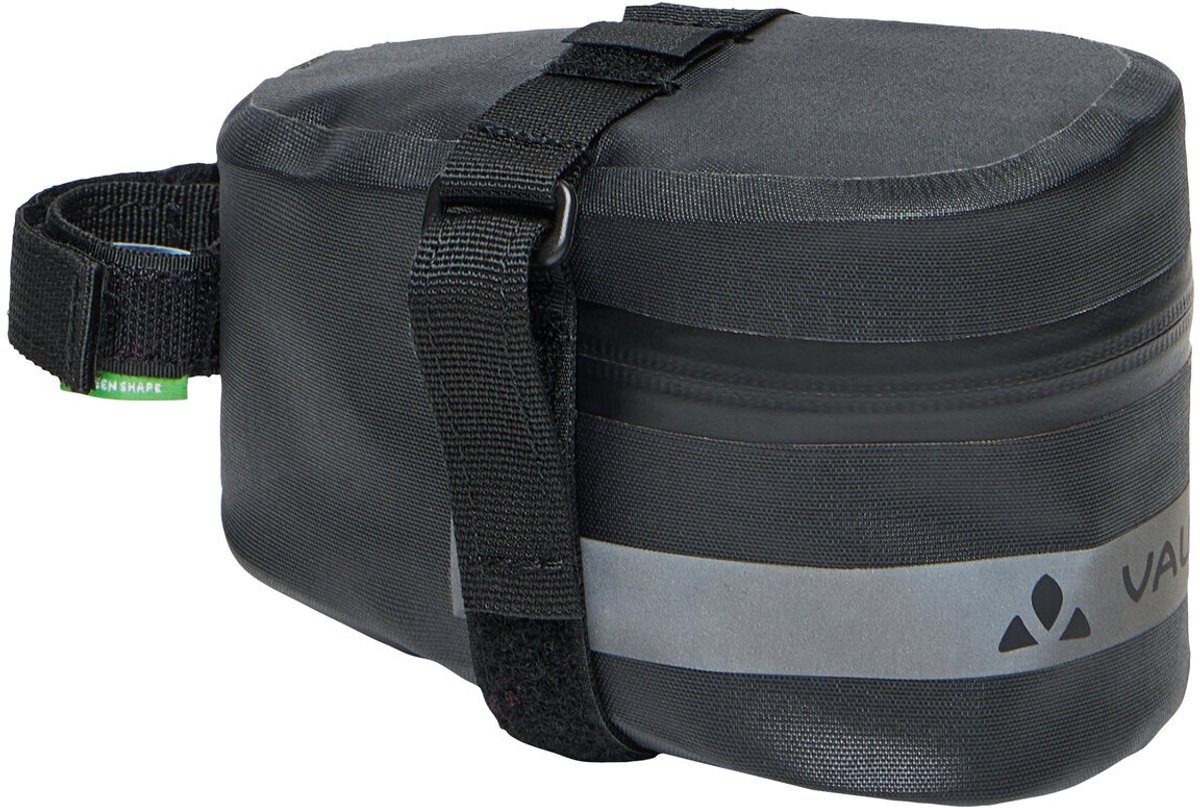De waterdichte, gelaste Tool Aqua L zadeltas biedt gravelfietsers en wielrenners voldoende ruimte voor een sleutels en repen of gereedschap, minipompje en een reservebinnenband. Deze waterdichte zadeltas met brede opening met ritssluiting rondom voor snelle toegang wordt met behulp van een geoptimaliseerd klittenbandsysteem eenvoudig en veilig onder het zadel bevestigd. Strips en een VAUDE-logo reflecteren. Daarnaast is er een lus voor het bevestigen van een achterlicht. Het VAUDE Green Shape-label staat voor een milieuvriendelijk, functioneel product van duurzame materialen.