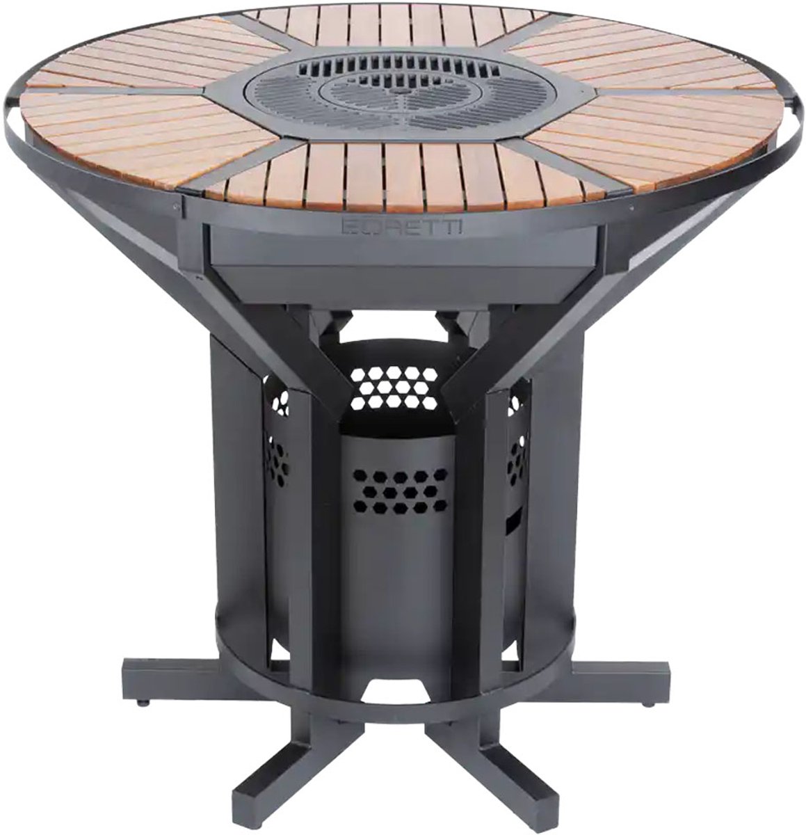 Zoveel meer dan een barbecue. Ontdek de veelzijdigheid van de Boretti Focolare: naast barbecue is het ook een elegante tuintafel en een handige plek om te genieten van heerlijke drankjes. Bovendien kan de Focolare ook gebruikt worden als vuurkorf. Met zijn ronde vorm is de Focolare een unieke samensmelting van een barbecue en een hoge eettafel. Met zijn elegante design past de Focolare in elke tuin en maakt hij van elke buitenbijeenkomst een gezamenlijke gebeurtenis. De Focolare heeft ook een ingebouwde opbergruimte waar je onder andere houtblokken kunt opbergen. Met de optionele stoelen kunnen gasten gezellig rond de Focolare zitten. Zo wordt koken echt een gedeelde culinaire ervaring. Verander de Focolare barbecue en hoge eettafel in een stijlvolle lage loungetafel met de optionele Focolare lounge poten. Dit maakt de Focolare de ideale aanvulling op elke loungeset die uitnodigt om samen te ontspannen. Door zijn design is de Focolare een echte blikvanger in elke tuin. Zijn ronde vorm bevordert een gezellige sfeer en maakt optimaal gebruik van de beschikbare ruimte. De duurzame materialen van de Focolare, zoals het teak hout, het gepoedercoate staal en de gietijzeren grillroosters, zorgen ervoor dat je er seizoen na seizoen lang plezier van hebt.