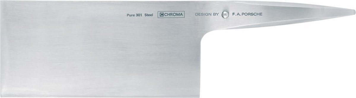 Groentehakmes van 17cm. In de unieke messencollectie van Chroma TYPE301 Design by F.A. Porsche is de greep gemaakt van 18/10 roestvrij staal en het lemmet van hoogwaardig Japans staal type 301. Dat maakt het mes bijzonder geschikt als keukengereedschap. Alle messen worden met de hand geslepen door een meesterslijper. De snede van het mes heeft de traditionele Japanse V-vorm, wat het mes uiterst scherp maakt en waardoor het ook lang scherp blijft. Ook in ons eigen land hebben een groeiende schare topkoks hun liefde verklaard aan de creatie van F.A. Porsche. Onderhoud / Deze messen mogen, net als andere koksmessen, niet in de vaatwasser. Ze zijn heel hygiënisch en gemakkelijk te onderhouden omdat ze geen naden hebben. Wassen in warm water en afdrogen na gebruik volstaat.